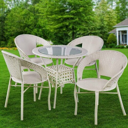Мебель садовая Green Days, белая, стол, 70х70 см, 4 стула, 150 кг, HYB104