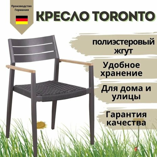 Кресло садовое Konway Toronto алюминий/роуп, подлокотник бук, цвет антрацит