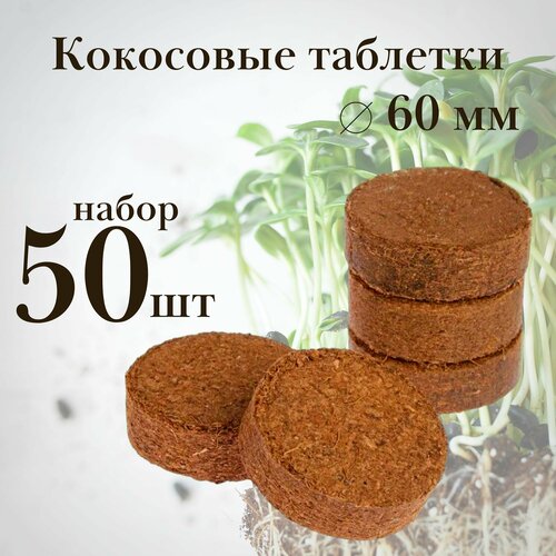 Кокосовая таблетка 50 штук, 60 мм без оболочки, грунт для проращивания семян на рассаду всех видов комнатных и садовых растений