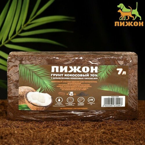 Грунт кокосовый Пижон в брикете, 70% торфа и 30% чипсов, 7 л, 650 г