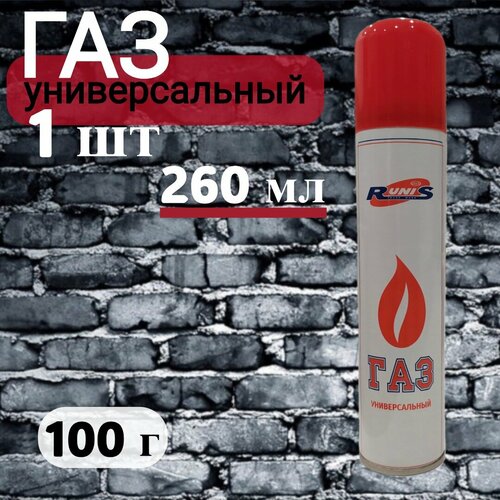 Газ Runis универсальный для заправки зажигалок, горелок, газовых паяльников (260мл.)