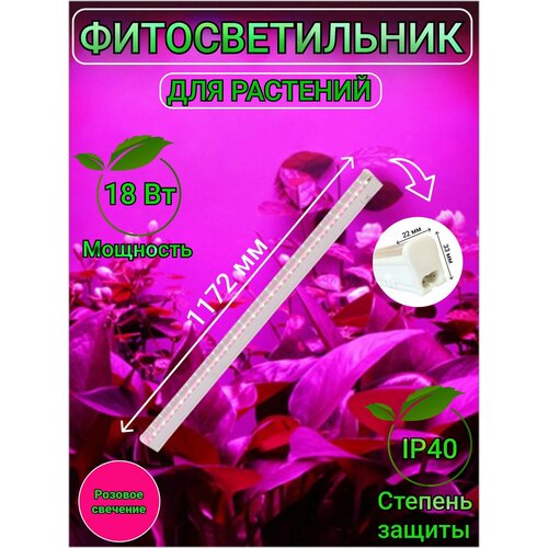 General, Фитосветильник , Мощность 18 Вт , Длина 1200 мм , Свет Розовый, полный спектр , Питание 220В , Степень пылевлагозащиты IP40