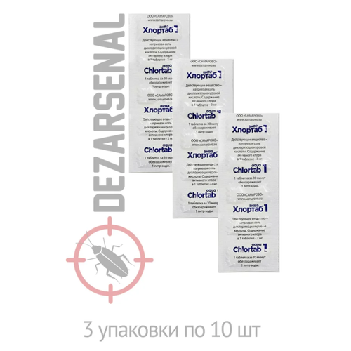 Дезинфицирующее средство для обезараживания питьевой воды Хлортаб-Аква, 10 таблеток, 3 штуки