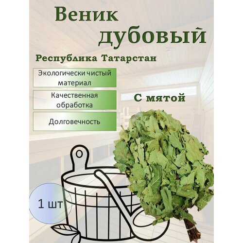 Дубовый банный веник с мятой для парения, массажа и оздоровления организма