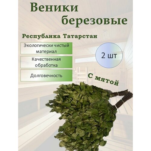 Банный веник для бани, береза с мятой, 30смх55см, 2 шт