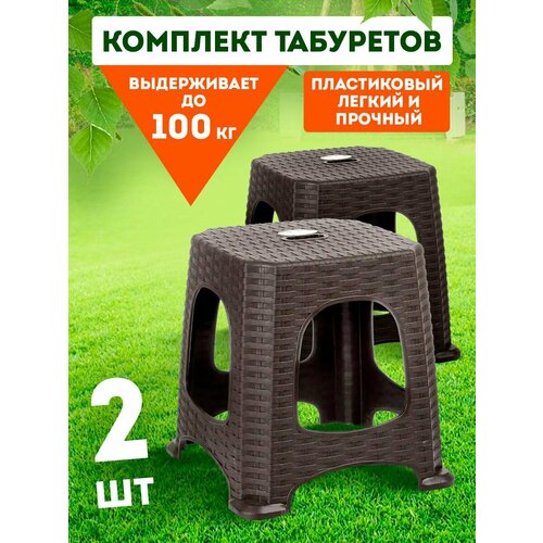 Табурет пластиковый для кухни 2 шт, серо-коричневый 256К