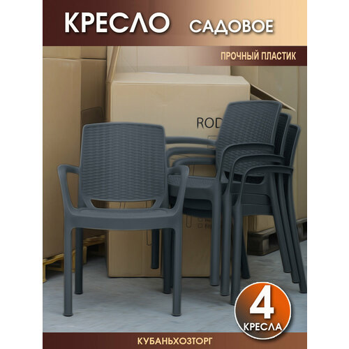 Кресло пластиковое RODOS комплект из 4-х стульев для сада и дачи. Графитовый