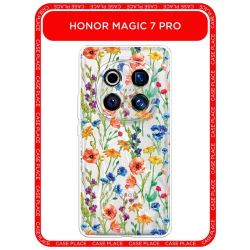 Чехол на Honor Magic 7 Pro / Хонор Мэджик 7 Про с принтом Маки и васильки фон, прозрачный