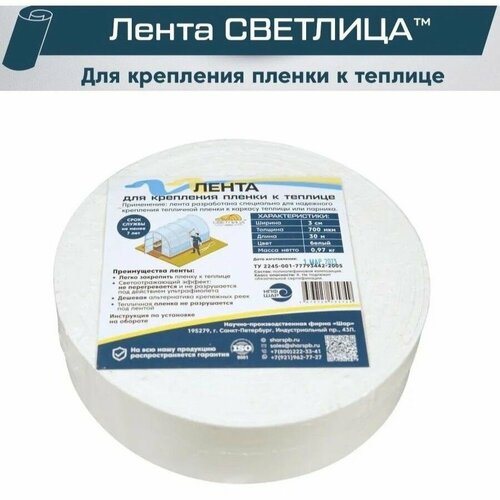 Лента Светлица для крепления многолетней пленки к каркасу теплицы или парника, ширина 3 см, длина 30 метров, толщина 700 мкм, срок службы от 7 лет