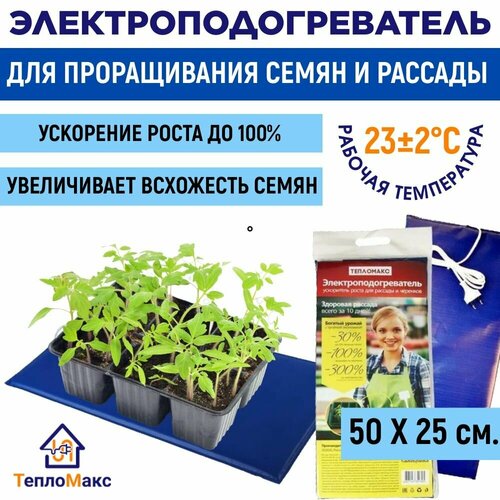 ТеплоМакс Электроподогреватель для проращивания семян рассады синий 20 Вт 1 шт. 50 см 25 см 1 см синий, голубой