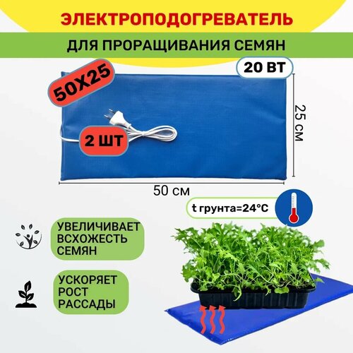 Система 50x25 см электрического подогрева 2 коврика для семян и рассады Тепломакс