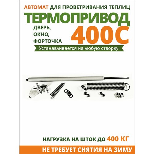 Термопривод для теплиц, Автоматика для проветривания на дверь, форточку, окно; "Термопривод 400С", нагрузка до 400кг , Оцинкованная Сталь, 1 шт
