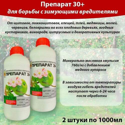 Препарат 30 плюс ММЭ (760 г/кг) Средство для защиты от зимующих вредителей, 1литр 2 штуки, Rattur