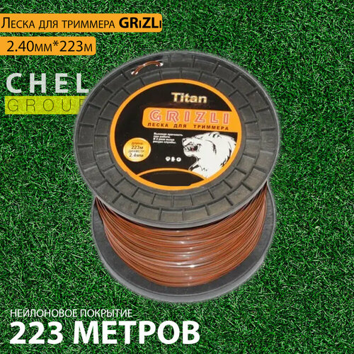 Леска для триммеров GRiZLi (бобина) 2.40мм*223м, черный+оранж, нейлоновое покрытие