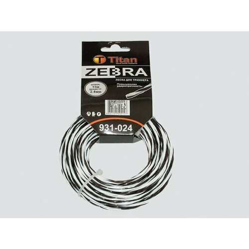 Леска для триммеров ZEBRA 2.40мм*15м, белый+черный. Витая, особо прочная