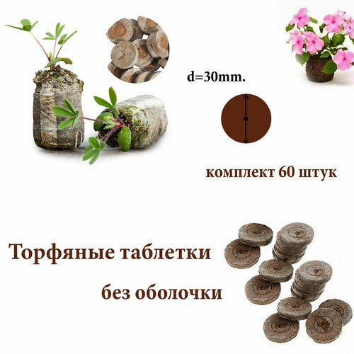 Таблетка торфяная диаметр 30мм, без оболочки, 60 штук, для выращивания рассады, в составе много питательных веществ.