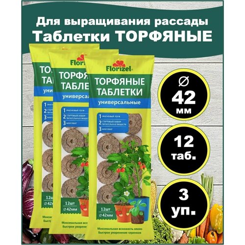 Торфяные таблетки универсальные, 42 мм х 12 шт. Florizel, 3 уп