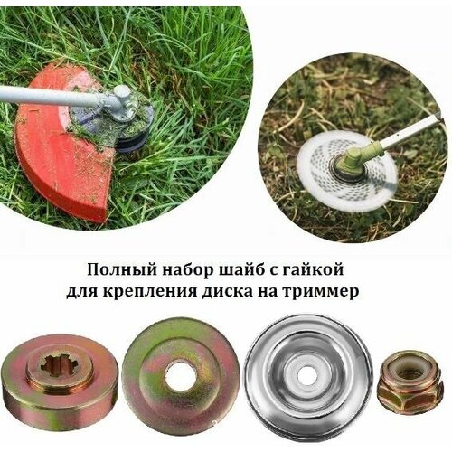 Комплект набор гаек и шайб редуктора триммера косы - M10x1,25 левая самоконтрящаяся, шайба редуктора, шайба ножа, чашка ножа