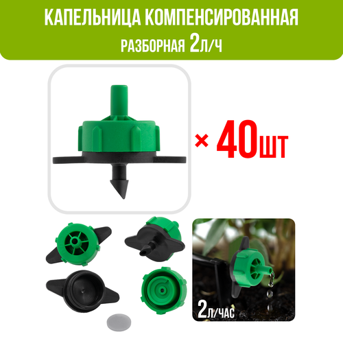 Капельница компенсированная разборная, 1/4", Зелёная, 2л/ч - 0,8-3,2 bar - 40шт (PCT0102. P)