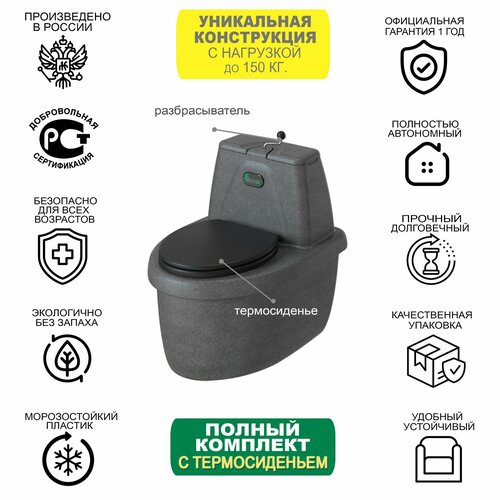 Туалет для дачи торфяной биотуалет Росток Комфорт (ЭкоПром) / автономный, без воды / уличный, пластиковый, дачный, прочный, комфорт, сухой