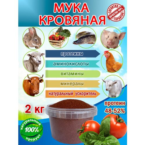Кровяная мука для животных, птиц и рыб натуральный ускоритель роста органическое удобрение для всех видов культур 2 кг. (2000гр.)