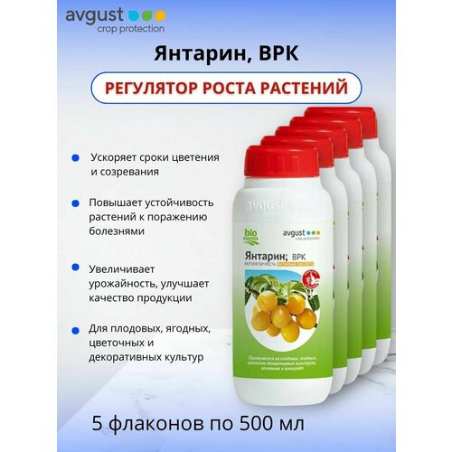 Агрохимикат (пестицид) Янтарин, ВРК (5 г/л янтарной кислоты), регулятор роста растений 5 шт по 500 мл