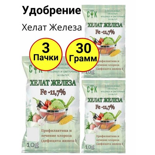 Хелат железа 11,7%, минеральное удобрение для растений, профилактика и лечение хлороза(дефицита железа) 10 грамм, СТК - 3 пачки