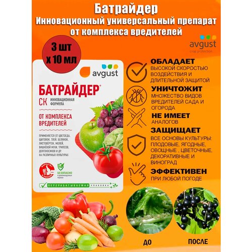 Инновационный универсальный препарат Батрайдер Avgust от комплекса вредителей, 10 мл
