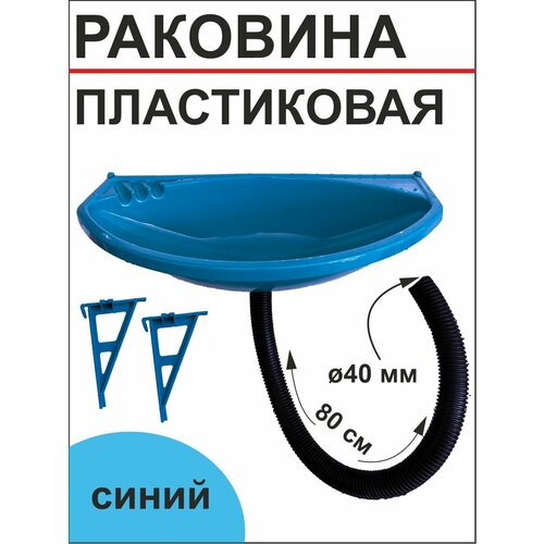 Раковина пластмассовая с сифоном и кронштейном синяя