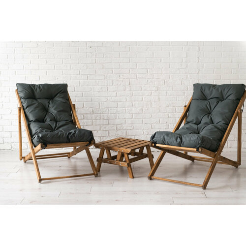 Комплект из двух кресел-шезлонгов с серыми матрасами и чайным столиком