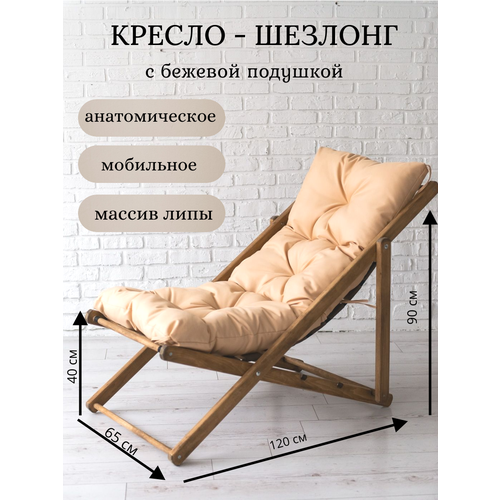 Древесина липы устойчива к перепадам температуры. Кресло шезлонг для дачи - идеальное решение для комфорта и отдыха!В комплекте мягкая подушка из Оксфорда 600, водоустойчивой ткани, которая легко моется.