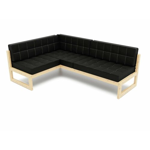 Угловой садовый диван СЕГА-У-С левый, черный-сосна, велюр, массив дерева, садовый, для кафе и бара, скандинавский лофт