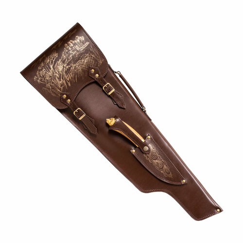 Колчан для шампуров из натуральной кожи с гравировкой изображения1шт.2.Шампур с рукоятью из ореха и латуни в виде головы тигра (общая длина шампура — 69 см: длина полотна — 54 см, длина рукояти — 15 см)6шт.3.Чехол из спанбонда (нетканый мягкий материал)1шт.