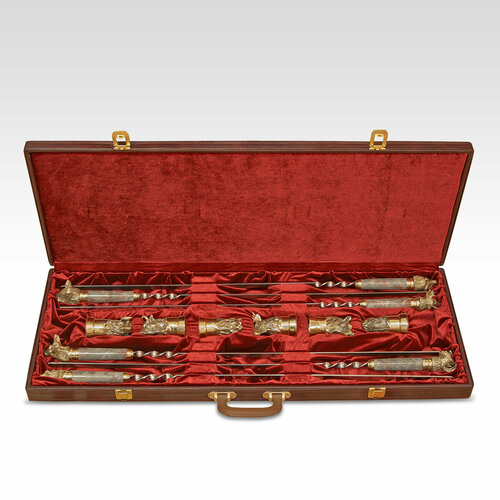 Шашлычный набор в подарочном кейсе №16 внутри красный велюр