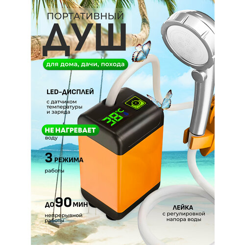Портативный душ для дачи и туризма, с насосом, 4800mAh, 90 минут беспрерывной работы
