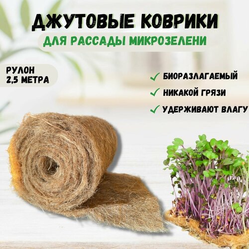 Джутовый коврик для выращивания микрозелени в рулоне 2,5м