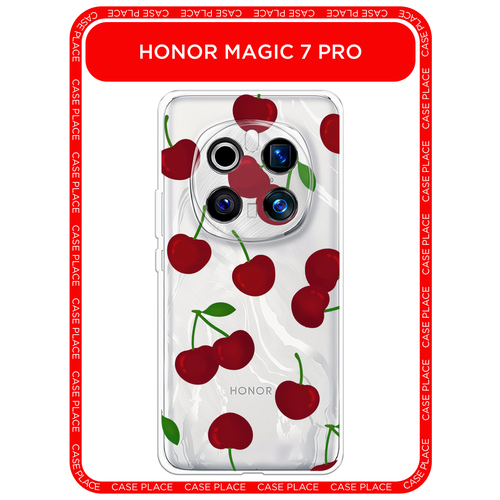Чехол на Honor Magic 7 Pro / Хонор Мэджик 7 Про с принтом Вишни паттерн 2, прозрачный