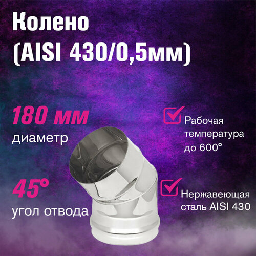 Колено нержавейка (AISI 430/0,5мм) 45 градусов (180)