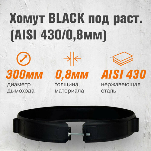 Хомут из нержавеющей стали BLACK для дымохода под растяжку для дымохода (AISI 430/0,5мм) (300)