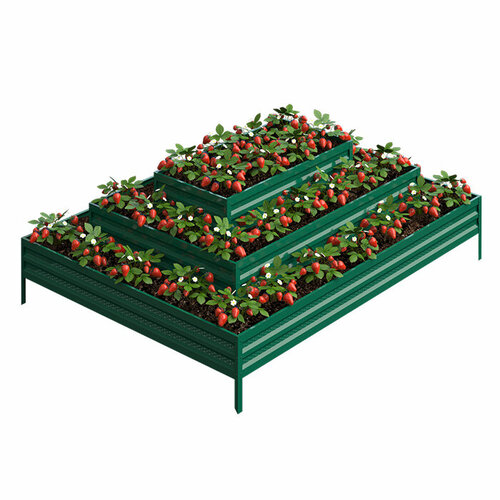 Клумба пирамида крашенная зеленая перфорированная квадратная 3 яруса большая h-48 см (2,0 х 2,0 м 1,4 х 1,4 м 0,8 х 0,8 м)