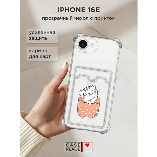 Чехол на Apple iPhone 16e (Айфон 16е) с картой и принтом Котик подмигивает в кармане