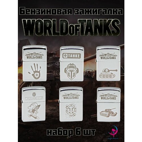 Зажигалка бензиновая подарочная с гравировкой World of Tanks набор 6 штук
