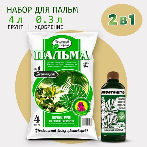 Зеленый город / Грунт для Пальмы. Набор для пересадки растений: земля для цветов комнатных 4 л, удобрение органическое 300 мл