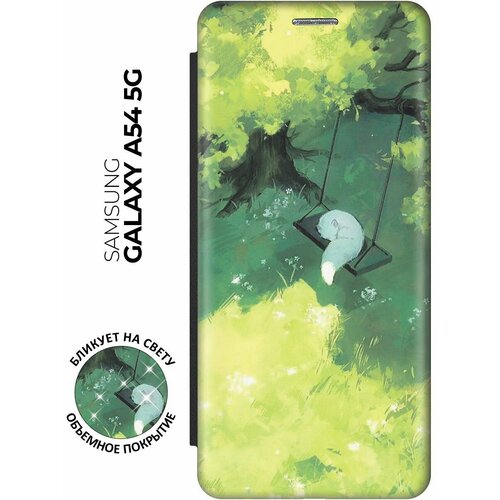 Чехол-книжка Песец на качелях на Samsung Galaxy A54 5G / Самсунг А54 с эффектом блика черный