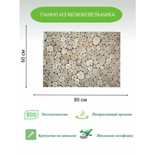 Панно из спилов можжевельника 80*60 см, шлифованное, для парной, без клея ЭКОпанно
