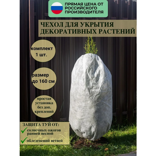 Зимний чехол на затяжках для туи и можжевельника, роз, кустов и деревьев размер 160х80 см, 1 шт.