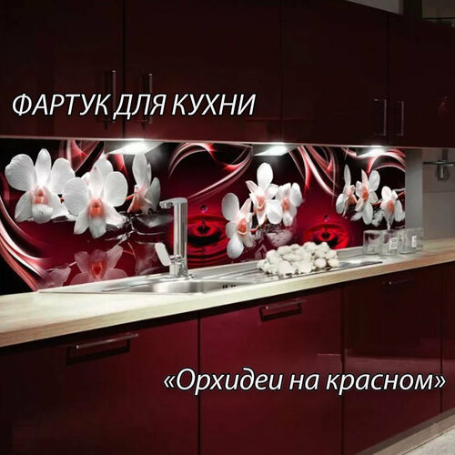 Фартук для кухни из АБС пластика 2000*600*1,5мм. Кухонный фартук ABS с фотопечатью "Орхидеи на красном"