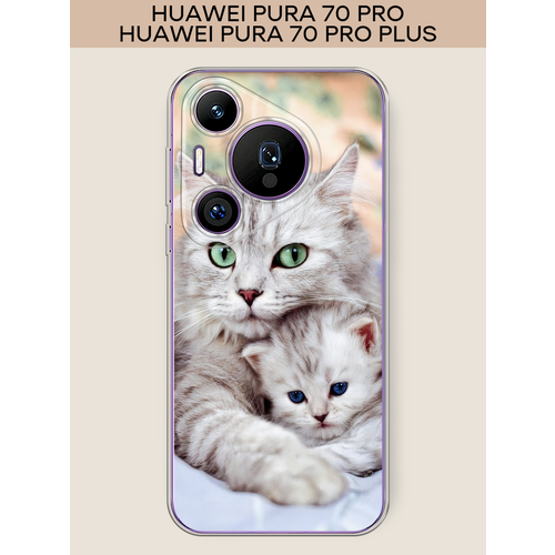 Силиконовый чехол "Кошка и котёнок" на Huawei Pura 70 Pro/70 Pro+ / Хуавей Пура 70 Про/70 Про Плюс