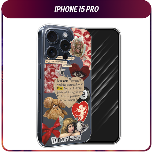 Чехол на Apple iPhone 15 Pro / Айфон 15 Про с принтом Поцелуи и сердца, прозрачный
