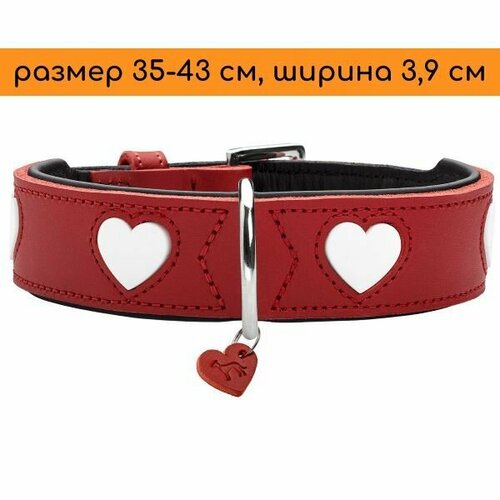 Hunter ошейник Love, цвет красный с отделкой "сердце", размер 35-43 см, ширина 3.9 см (длина ошейника 50 см) HUNTER